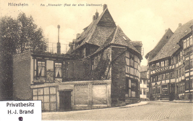 Der „Alte Markt“ ist ein Teil der alten West-Ost-Handelsstraße vom Rhein zur Elbe, an der sich der „“ Hildesheim im 8. Und 9. Jahrhundert entwickelte; er wird ursprünglich nur einzeilig bebaut gewesen sein.