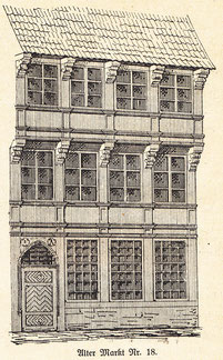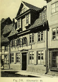Nr. 15 (1278), neun Spanne lang, umgebautes EG, mit zwei auskragenden OG, der größte gotische Bau des Altemarktes. Alle genannten Bauten mit der typischen Dreieckzier in Setzschwelle und Konsolen.